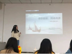 第一位辅导员是来自文学与新闻传播学院的邓宏爽老师。邓老师以“快乐启航,同舟共济”为团辅主题,通过团体活动,让同学们增加彼此之间的默契,信任,同时也让同学们明白什么是集体?奉献于集体的的重要性。