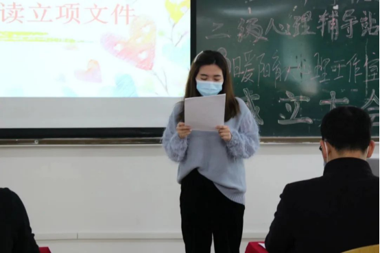 大会首先由学校心理健康教育中心副主任程曦老师宣读立项文件。 随后徐俊生老师围绕“基础设施建设—内容建设—活动建设—队伍建设—内涵建设”五个维度17项具体内容介绍了二级心理辅导站成立的相关建设方案以及后续安排。