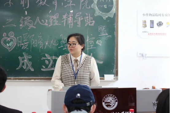 4月7日,学前教育学院在5402教室举行二级心理辅导站暨“暖阳心理育人工作室”成立大会。学前教育学院党总支副书记蒋奉君老师、书记助理左雪老师、学校心理健康教育中心副主任程曦老师、学前教育学院二级心理辅导站负责人徐俊生老师和二级心理辅导站全体成员参加。