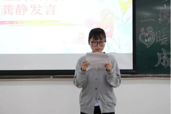 随后,2020级心理委员代表龚静发言并表示对未来的发展将努力做到四点:一是要及时关注心理热点和同学的心理变化;二是要明确自己的职责;三是要高度警惕,当感知到同学心理危机预警信号时一定要立即报告;四是要加强班级、辅导员、辅导站的联系。