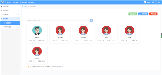 2.根据自己的时间安排,选择心仪的咨询师。可按时间,地点和咨询师选择。