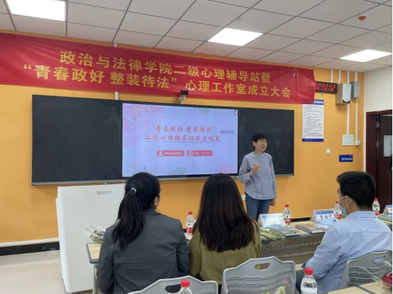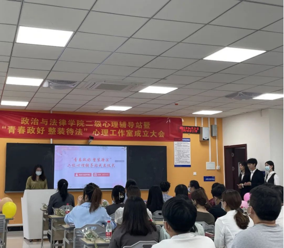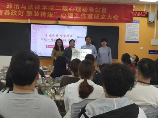 为全面贯彻落实全国教育大会、全国高校思想政治工作会议和学校思想政治理论课教师座谈会精神的具体举措,进一步推进《高等学校学生心理健康教育指导纲要》中关于高校二级心理辅导站落地落实的具体举措,有效推动我校心理工作的精细化和专业化发展,增强学生思想质量提升和高校理育人工作实效。4月27日中午13:00,政治与法律学院举行“青春政好整装待法”二级心理辅导站授牌仪式,重庆人文科技学院党委常务副书记舒卫华出席仪式并授牌。